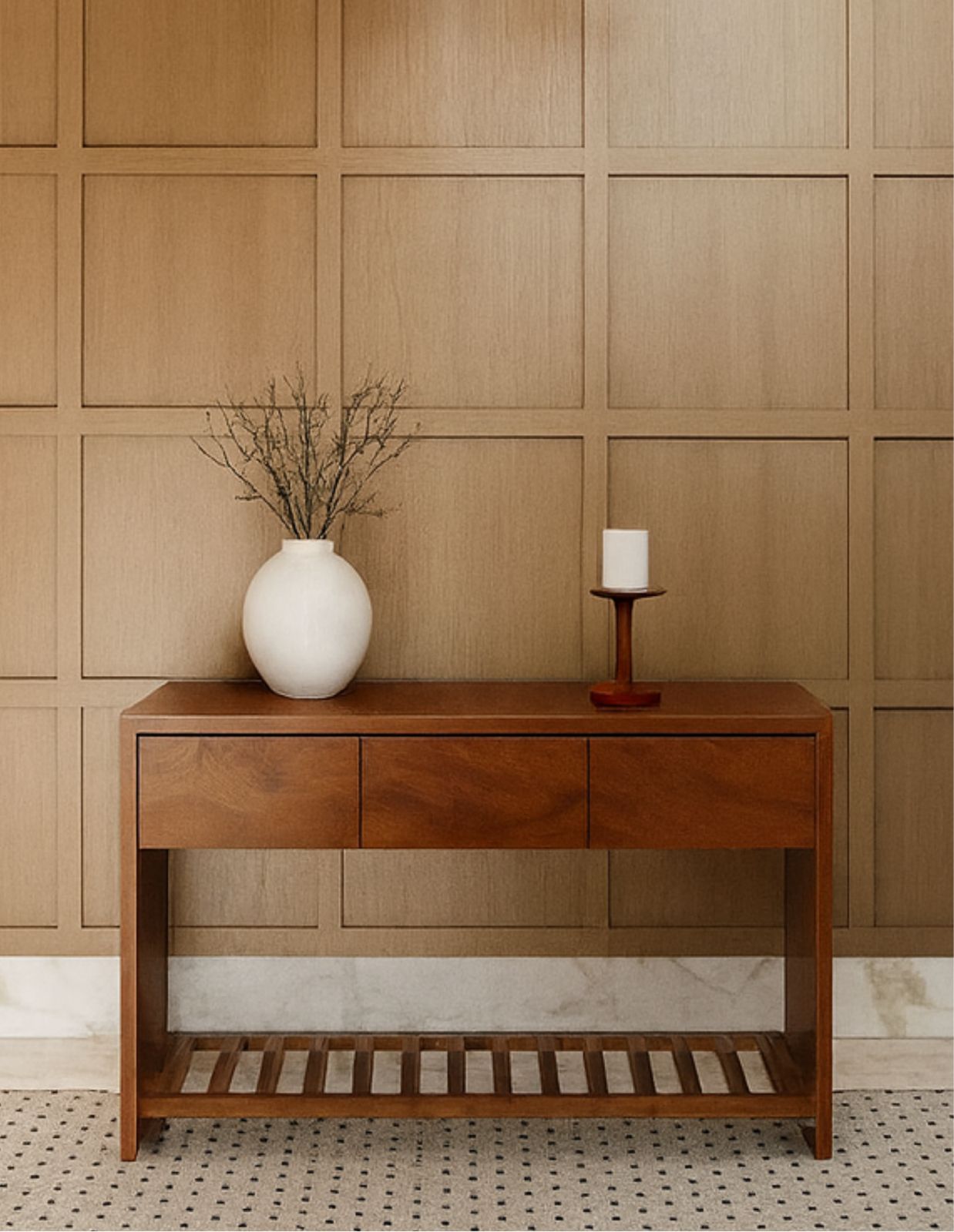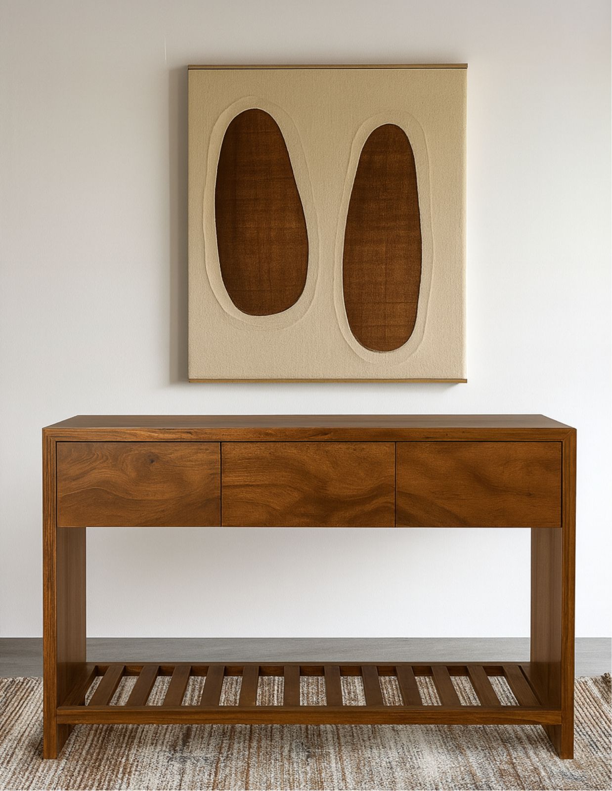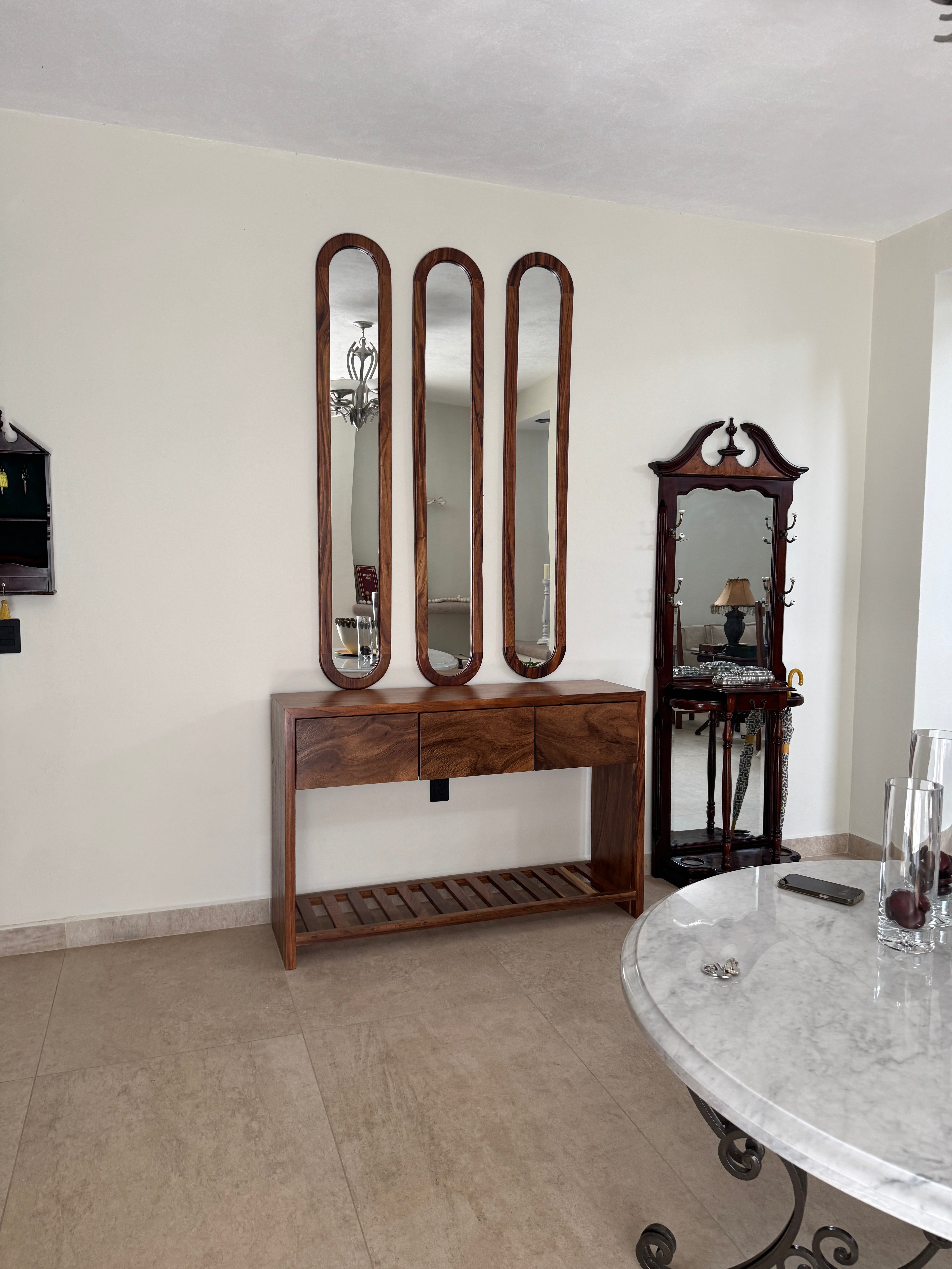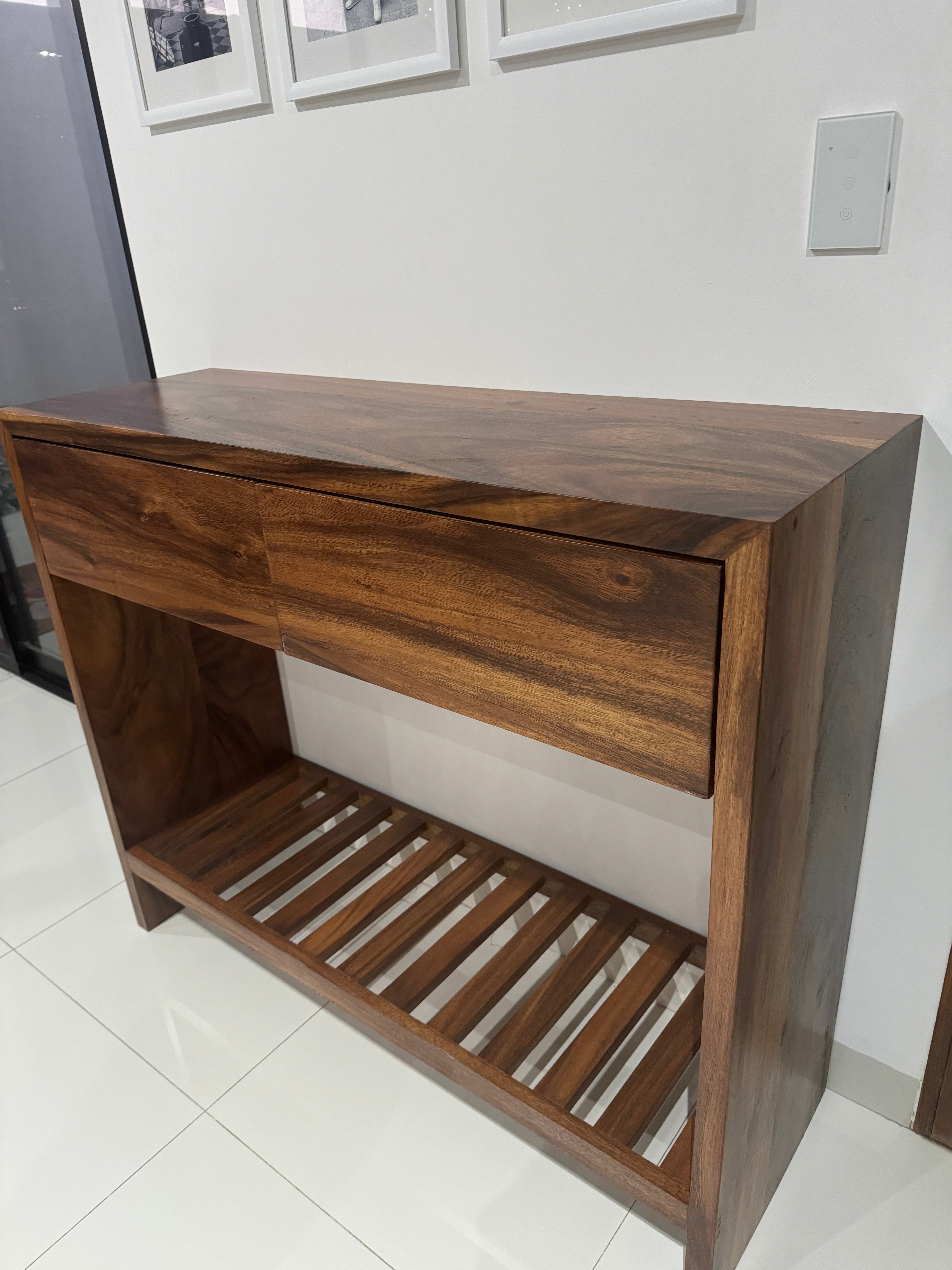 Credenza madera de parota sólida con 3 cajones y repisa de fajilla inferior.