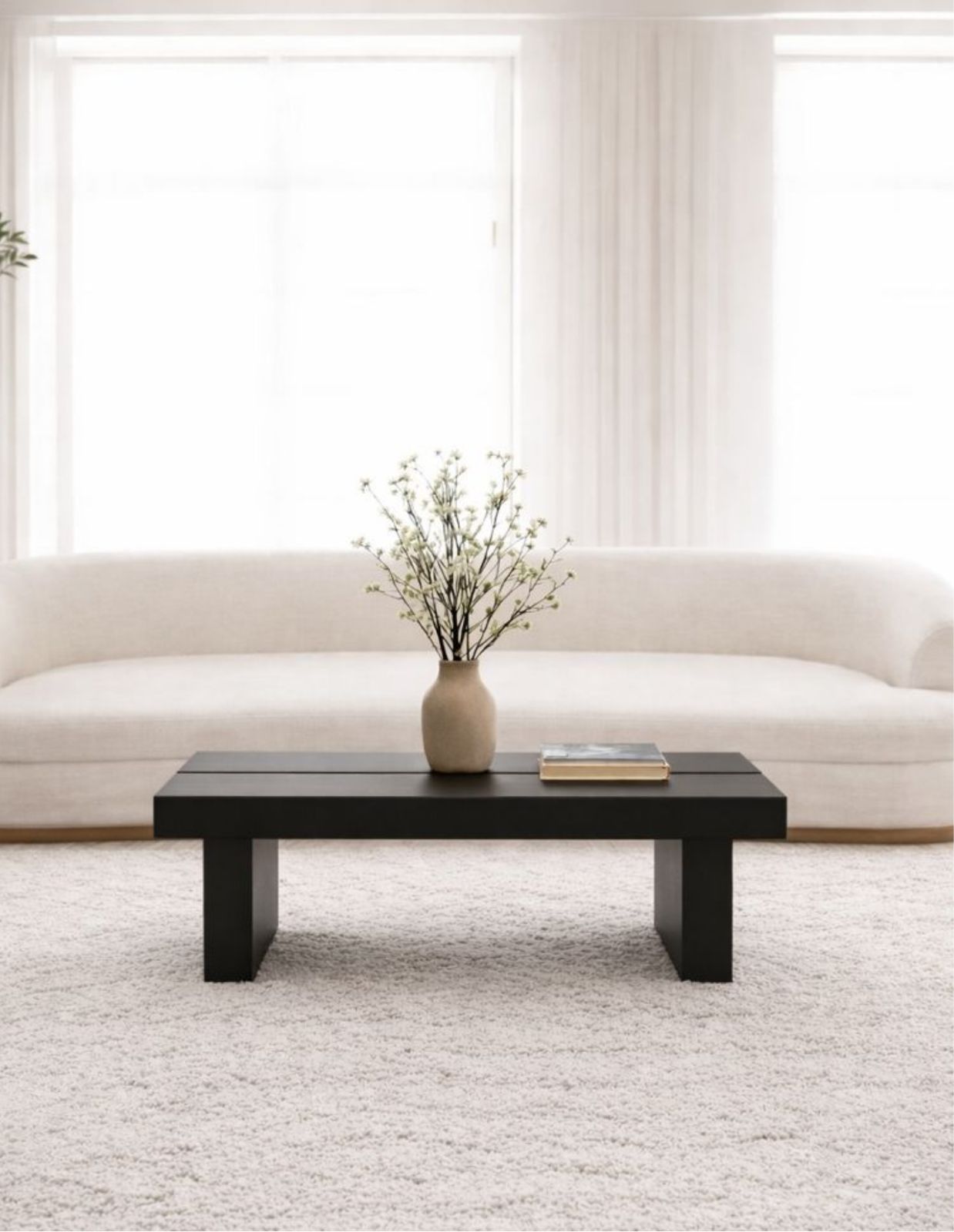 Mesa de centro hecha de madera sólida en tintada de color negro estilo Farm House.