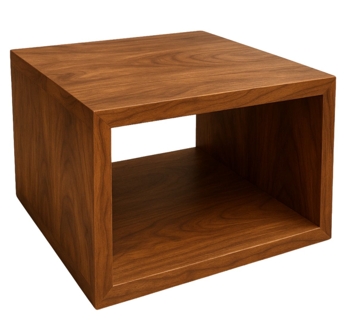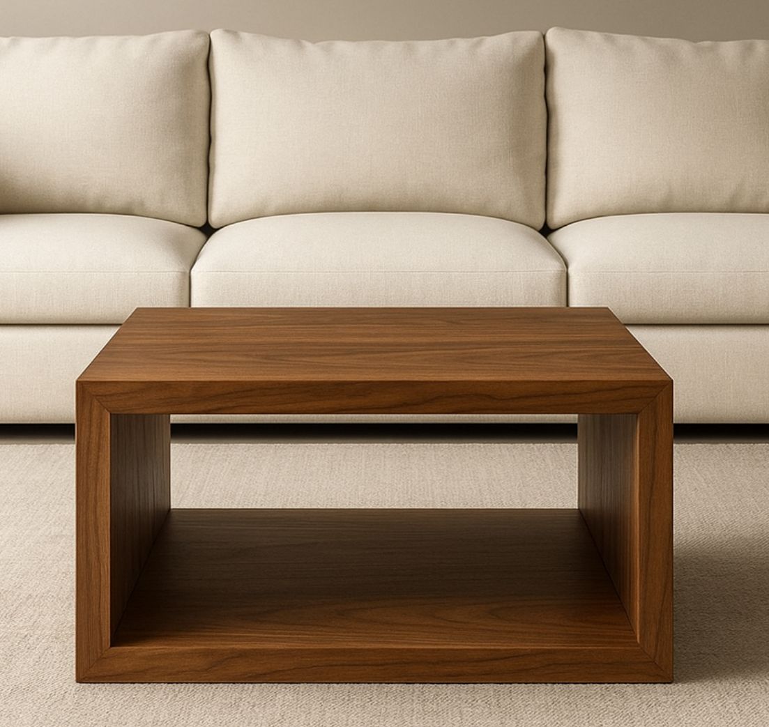 Mesa de tablón de parota, cuadrada con espacio inferior, para sala.