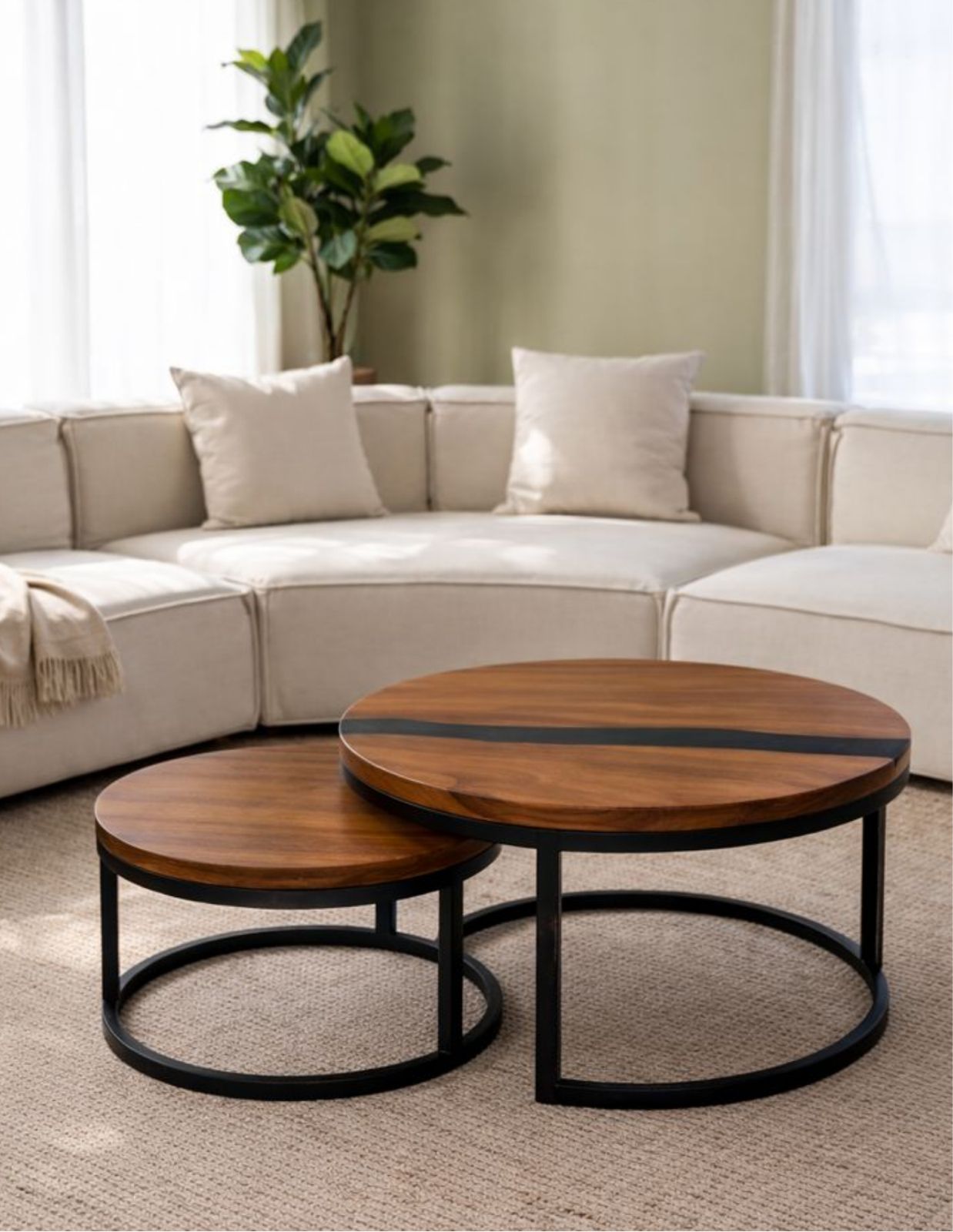 Set de 2 piezas circulares para mesas de centro.